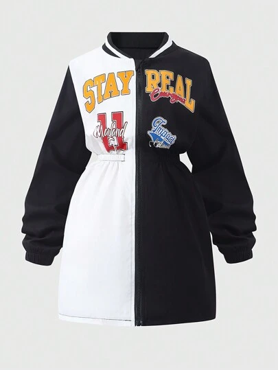 SHEIN Tween Girls Letter Print Dropped Shoulder Zip-Up Hoodie - Multicolor - View 1