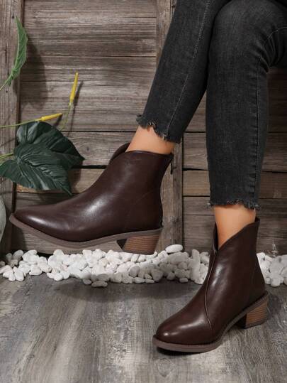 Women's Ankle Boots, Thick Heel, Back Zipper, British Style Boots With Thermal Lining, Autumn/Winter 2025 New Arrival - Mocha Brown - View 1