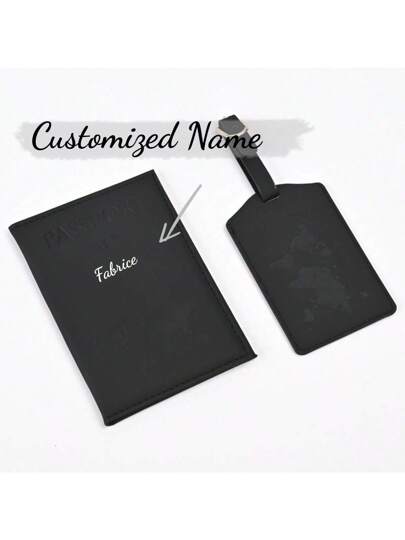 2pcs Customized Name Map Passport Holder, Portable Universal Couple Passport Cover For Women Men, PU Leather Airplane Travel Wallet Case Organiser For Passport Credit Cards Boarding Passes - Black - View 1