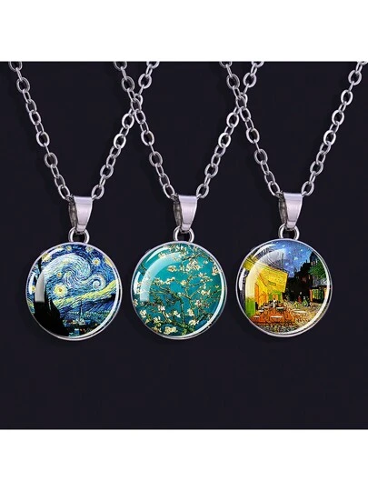 1pc Van Gogh Starry Night Art Necklace Snap Button Pendant Necklace - style - View 11