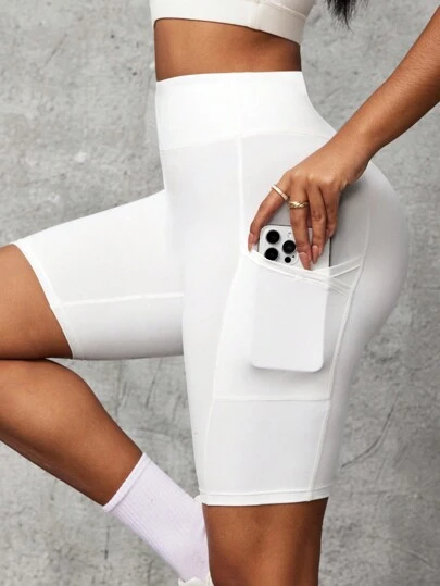 SHEIN Essnce 2pcs Women Summer Fitness Yoga Tight Shorts With Pockets, Sports Running Cycling Set - Multicolor - View 10