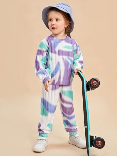 SHEIN Toddler Girls Graphic Drop Shoulder Sweater & Knit Pants Set - Multicolor - View 1