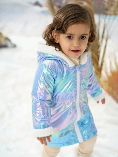 Baby Girl Thicken Laser Hooded Warm Outerwear Jacket - Multicolor - View 1