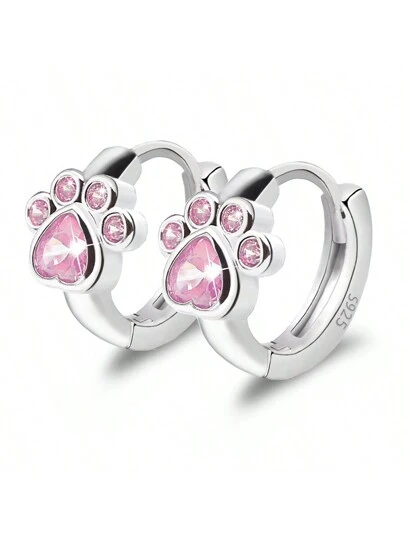 Hypoallergenic Dog Paw Cubic Zirconia Earrings, Suitable For Teens, Girls & Women, Cute Animal Stud Earrings, Birthday Gift - Pink - View 1