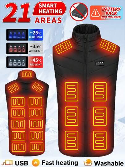 Outdoor Men's Vest Warm Heating Tank Top, Winter Warm USB Heating Tank Top With 21 Heating Zones, Battery Not Included, Suitable For Travel, Hiking - Black - View 1
