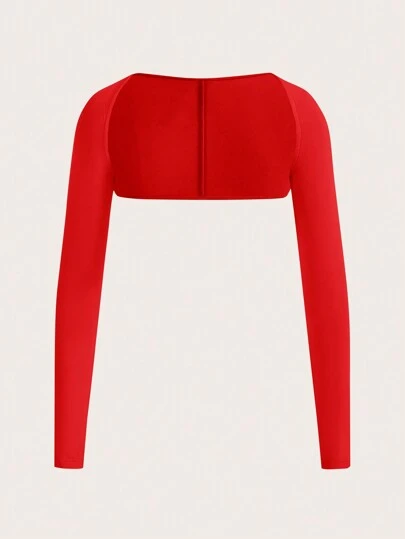 SHEIN BASICS Women Solid Color Long Sleeve Vest Tops For Autumn, New Year - Red - View 1