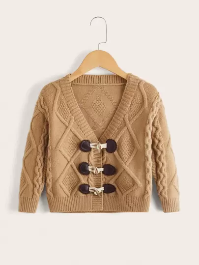 Toddler Girls Cable Knit Duffle Cardigan - Camel - View 1