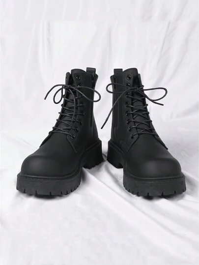 2024 Autumn/Winter New Arrival, Holiday Sale, Women Hiking Ankle Boots, Black Boots, Extra Wide & Extra Large Sizes, Bridal Season Unisex High-Top Leather Boots, Small Sizes & Women Large Sizes, New Simple Leather Shoes, Casual Couple Outdoor Shoes, Business Work Shoes Suit Wedding Shoes - Black - View 10