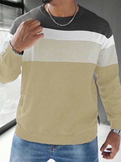 Manfinity Homme Plus Size Men's Color Block Crew Neck Casual Pullover Sweater - Apricot - View 1