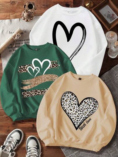 SHEIN 3pcs Pack Tween Girls' Casual Minimalist Thick Thermal Lined Loose Fit Crew Neck Long Sleeve Hoodies,Suitable For Autumn/Winter - Multicolor - View 1