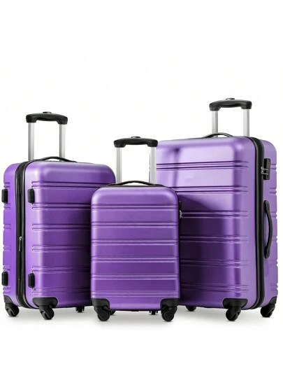 SET OF 3 ABS Hard Shell Travel Trolley Suitcase 4 Wheel Luggage Set Hand Luggage, 20,24,28 Inch (Purple) Travel Suitcase Suitcases Suit Case Durable Carry On Travel Luggage Carry On Suitcase Waterproof Winter Holiday Women Travel Essentials Suitcase Set Luggage Set - Multicolor - View 1