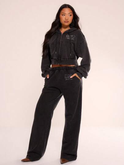 MUSERA Low Rise Washed Straight Leg Joggers Vacation Ibiza, Holiday, Club - Black - View 2
