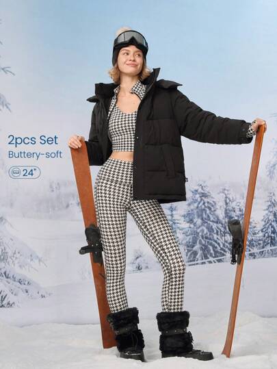 GLOWMODE FeatherFit™ Cropped Active Tank & High-Rise Leggings Set - Black and White - View 2