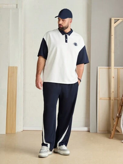 Manfinity VCAY Plus Size Men's Knit Short Sleeve Polo Shirt And Pants Set - Navy Blue - View 1