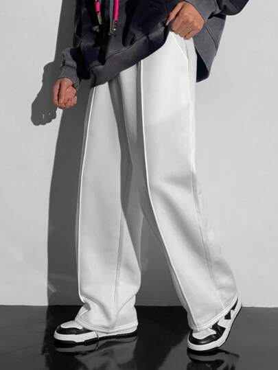 SHEIN Leap Crew Teen Boys' Casual Comfortable Versatile Solid Color All-Match Adjustable Waist Drawstring Straight Pants - White - View 1