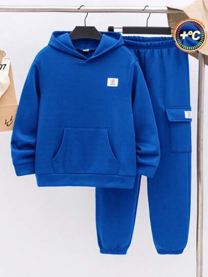 SHEIN Leap Crew Tween Boys Back To School Outfit, Includes Oversized Hoodie Sweatshirt And Jogger Pants, Versatile For School, Commuting, Daily Casual And Activewear - Royal Blue - View 1