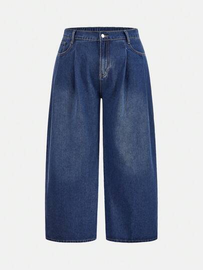 SHEIN PETITE CURVE Women's Plus Size Relaxed Fit Blue Denim Jeans - Blue - View 1