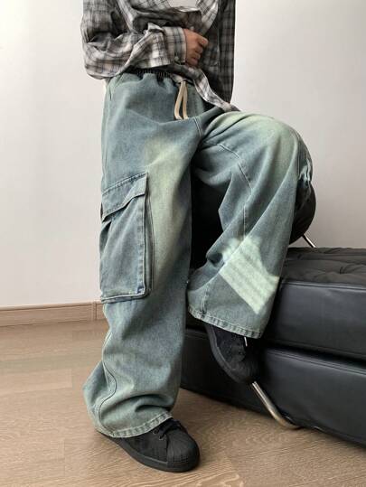 DAZY Women's Loose Wide Leg Casual Cargo Jeans,Baggy Jeans Fall,Winter - Dark Wash - View 1