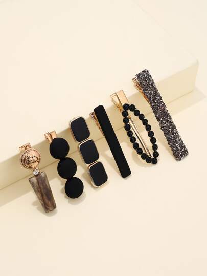 6pcs Geometric Decor Elegant Metal Hair Clip For Daily Casual Outing Wear Street Claw Clips Hair Claws Hair Barrettes, School Stuff, Hair Accessories - Black - View 1