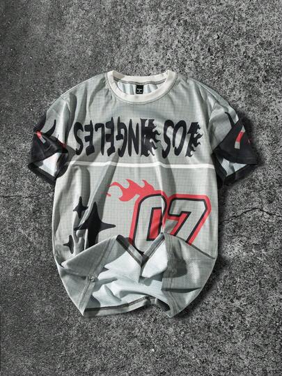 Manfinity EMRG Men's Casual Contrast Color Letter Print Short Sleeve Racing T-Shirt - Multicolor - View 1