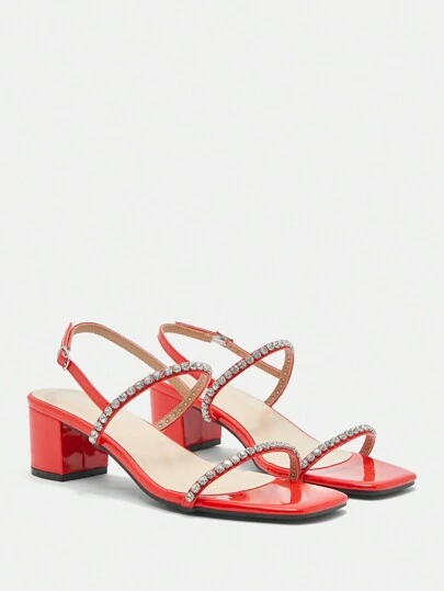 CUCCOO CURVES Wide Fit Women Simple Style Open-Toe High Heel Sandals Spring Shoes Spring Break Easter - Red - View 1