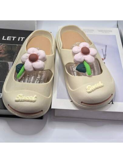 New Closed-Toe Mule Slippers For Women, Summer Floral Flower Print Non-Slip Breathable Sandals - Khaki - View 1