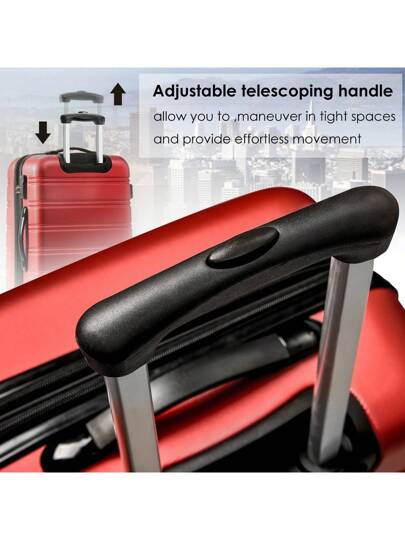 ABS Hard Shell Travel Trolley Suitcase 4 Wheel Luggage Set Hand Luggage, 28", (Red) - Red - View 8