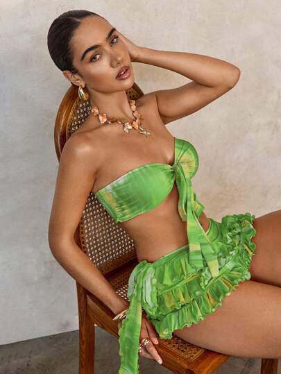 SHEIN Swim Basics Women Sexy Tie-Dye Tie Dye Print Bandeau Bikini Set, For Summer Beach Vacation - Cadet Blue - View 1