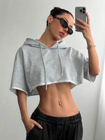 StreetHx Women's Grey Casual Short Loose Hooded Short Sleeve Sweatshirt, Spring/Summer - Grey - View 1