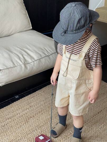 DAZY 2pcs/Set Toddler Boys Striped T-Shirt And Letter Print Bib Pants Outfit, Kids Fall Clothes - Apricot - View 8