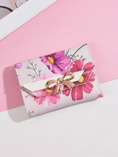 1 Girl's Colorful Printed Short Wallet, Coin Purse, Card Holder, Suitable For Daily Use And Party Use, The First Choice For Mother's Day Gifts - Pink Flower - View 1
