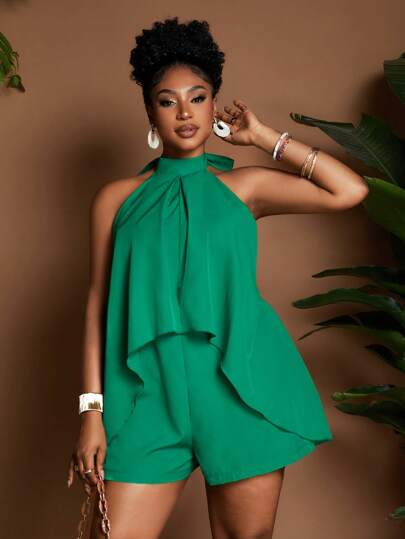 Maweii Plus Size Minimalist Fashion Casual Everyday Jumpsuit,Beach Outfits - Green - View 1