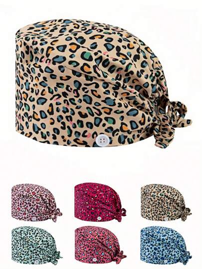 1pc Women's Colorful Leopard Print Work Hat/Nurse Cap, Featuring Drawstring Design, Side Mask Strap Hooks, Suitable For Doctors, Nurses, And All Hospital, Beauty Salon, Veterinary Workers - Multicolor - View 1