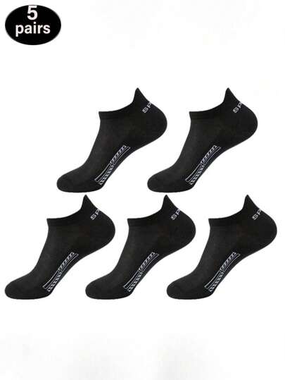 1/3/5 Pairs Men's Black Lightweight Mesh Breathable Summer Socks, Sports Ankle Socks For Men With Moisture-Wicking - Multicolor - View 4