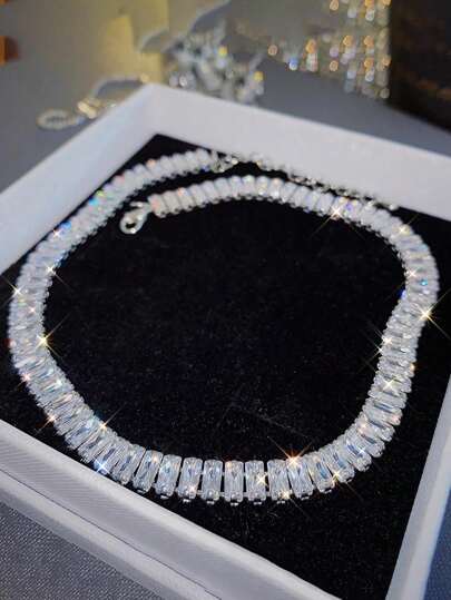 1pc Luxury Geometric Square Choker Necklace, Jewelry For Women, Summer Bohemian Necklaces - Silver - View 1