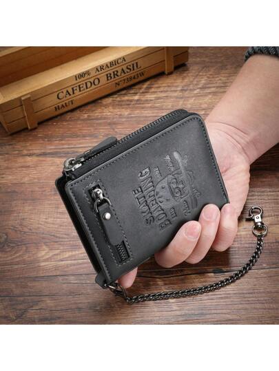 1pc New Men Wallet Vintage Skull Multi-Function Zipper Card Holder Wallet For Young Student Versatile Multi Card Slots Wallet Purse Wallet Mini Wallet Men Wallet Leather Small Wallet - Black - View 1