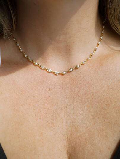 1pc Faux Pearl Necklace For Women 14K Plated Dainty Pendant Choker Simple Cute Faux Pearl Charm Chain Necklace Minimalist Gift - Pearl Necklace - View 1