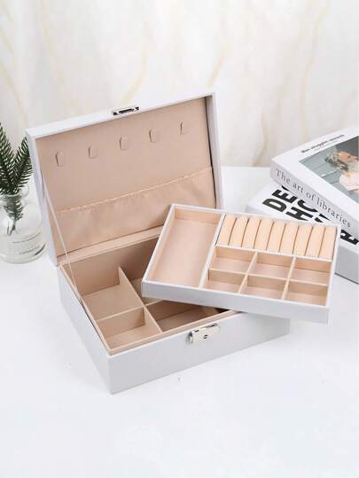 1pc High-End Double Layer Large Capacity Jewelry Box, Ring Earring Accessory Storage Box For Home Use, Bedroom Luxury Jewelry Case, Gift For Her, DIY Sewing Supplies Organizer - White - View 1