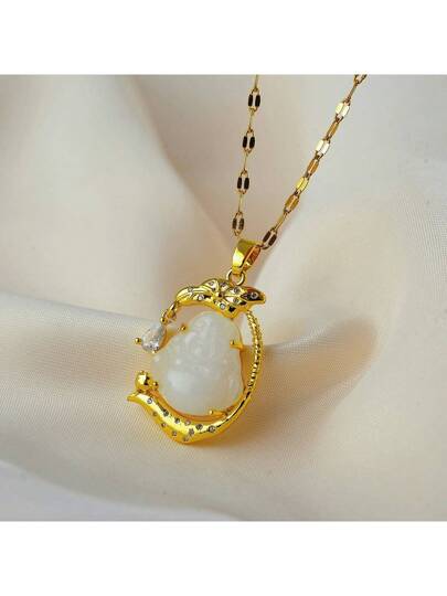 1pc Natural Hetian Jade Pendant Necklace, Female Lightweight Luxury Gold Inlaid Jade Chalcedony Necklace - Pendant Necklace - View 4