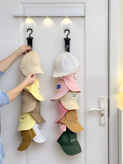 Rotatable Hat Storage Rack, Free Traceless Adhesive Hook, Punch-Free Hat Storage Artifact, Home Hanging Hat Clip Storage, Can Hold 8 Hats, Door Hat Rack And Organizer, Baseball Hat Rack, Hat Rack Bracket, Door Hat Rack, Door Hat Rack, Closet Hat Rack, Perfect Storage Solution. - Multicolor - View 1