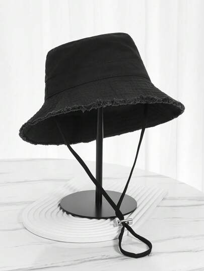 Frayed Brim Bucket Hat Suitable For Outdoor Mountaineering Sun Hat In Summer - Black - View 1