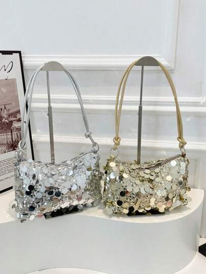A New Spring And Summer Mini Fashionable Sequin Party Style Fashion Shoulder Bag. Zip Closure. Lipstick Bag Coin Suitable For Daily Use By Teen, Going Out, Commuting, Banquets, Parties, Gatherings. Gifts Friends, Besties. - Multicolor - View 1