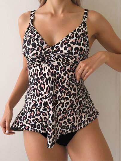 Swim Lushoire Women's Elegant Casual Spaghetti Strap Top & Tankini Swimwear Beach Outfit For Summer Beach Vacation - Multicolor - View 1