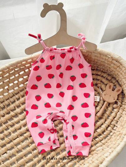 Cozy Pixies Newborn Baby Girl Strawberry Cartoon Pattern Knit Soft Crew Neck Sleeveless Jumpsuit - Pink - View 1