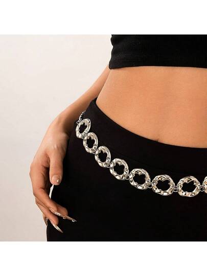 Fashionable Versatile Round Metal Belt Chain - Silver - View 1