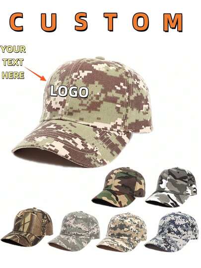 Custom Logo/Text Camouflage Hat; Four-Season Baseball Cap; Outdoor Sports Curved Brim Cap; Travel Sun Hat; Anniversary Gift, Birthday Gift, Wedding Gift, Valentine's Day Gift, Mother's Day Gift, Father's Day Gift, Gift For Best Friends, Thanksgiving Gift, Christmas Gift - Camouflage Baseball Cap - View 1
