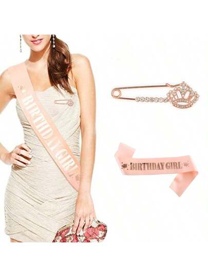 2pcs Crystal Crown Brooch Strap Decoration, Fashionable Rose Gold Letter Shoulder Strap Gift For Ladies, Party, Gathering, Ball, Photography Props - Pink - View 1