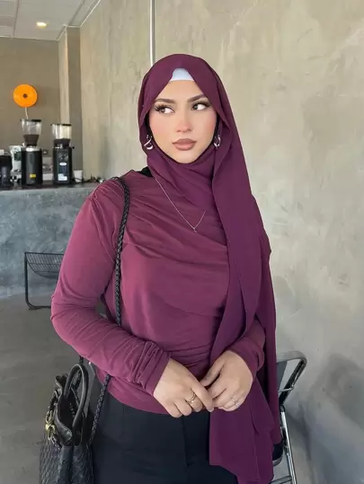 1pc Women's Muslim Hijab, Solid Color Chiffon Scarf, Suitable For All Seasons Daily Wear - Purple - View 1