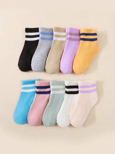 10 Pairs Kids Socks, Fashionable Comfortable Stripe Breathable, Suitable For All Seasons, Including Easter, For Daily Use - Multicolor - View 1
