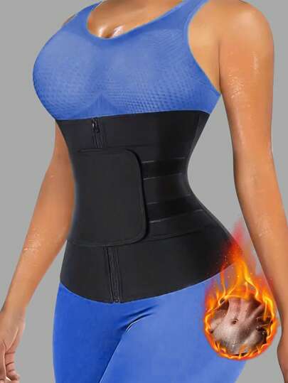 1pc Women Waist Trainer Belt, Waist Cincher Trimmer, Sauna Sweat Waist Trimmer Belt, Sports Waist Belt, Belly Band, Waist Slimming Belt, Ab Trainer - Black - View 1
